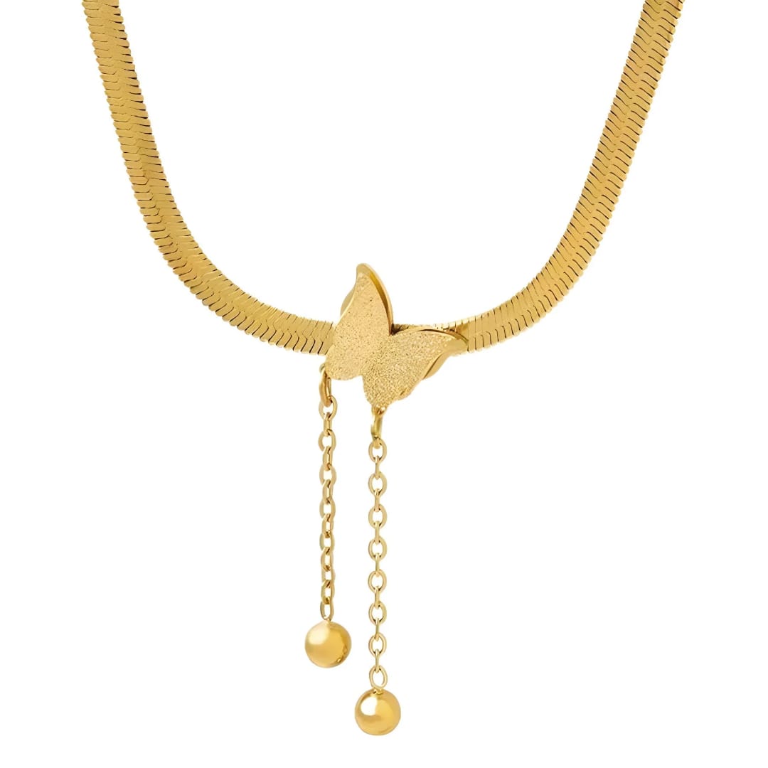 Laissez-vous séduire par ce collier doré au pendentif papillon, symbole de beauté et de transformation. Un bijou qui attire les regards et raconte une histoire.