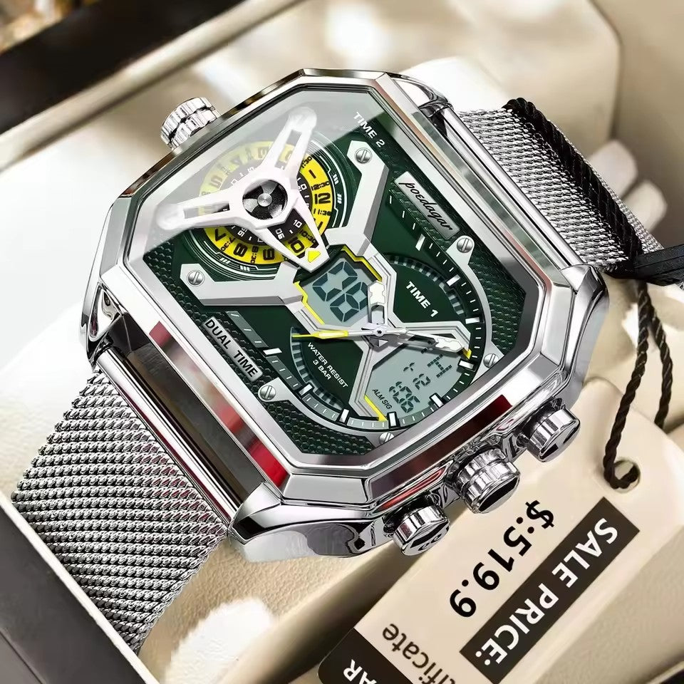 🔥 Que vous soyez en réunion, en voyage ou en soirée, cette montre s’adapte à votre rythme. Son design carré audacieux attire les regards. Sa robustesse vous accompagne partout. Un accessoire qui parle de vous — sans dire un mot.
